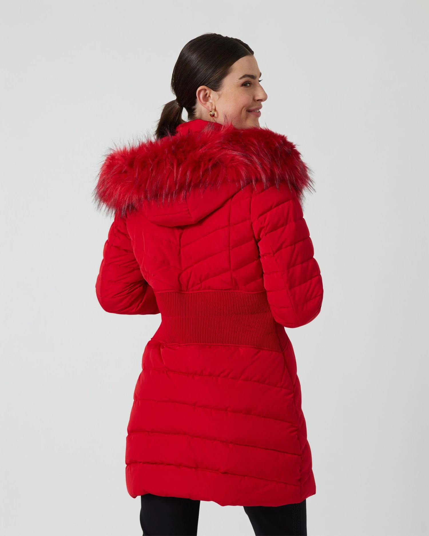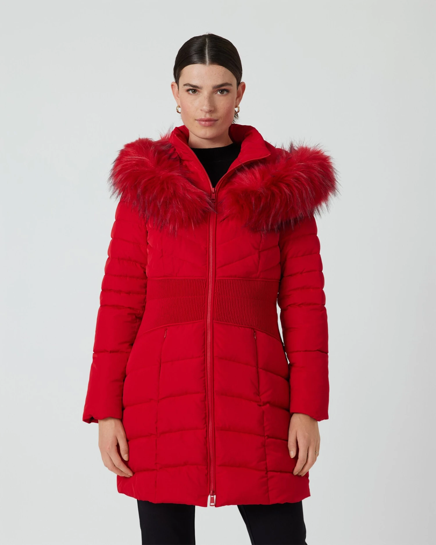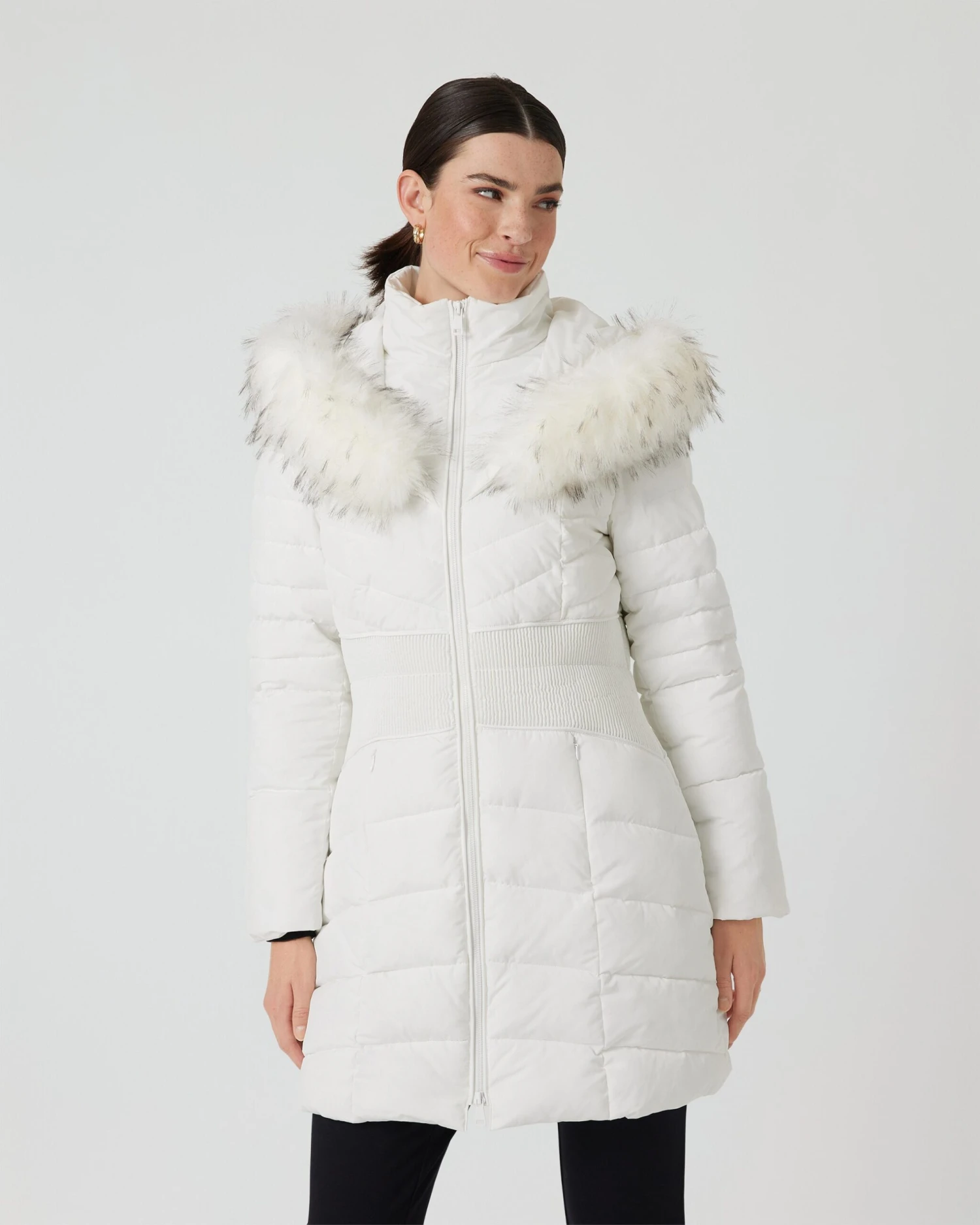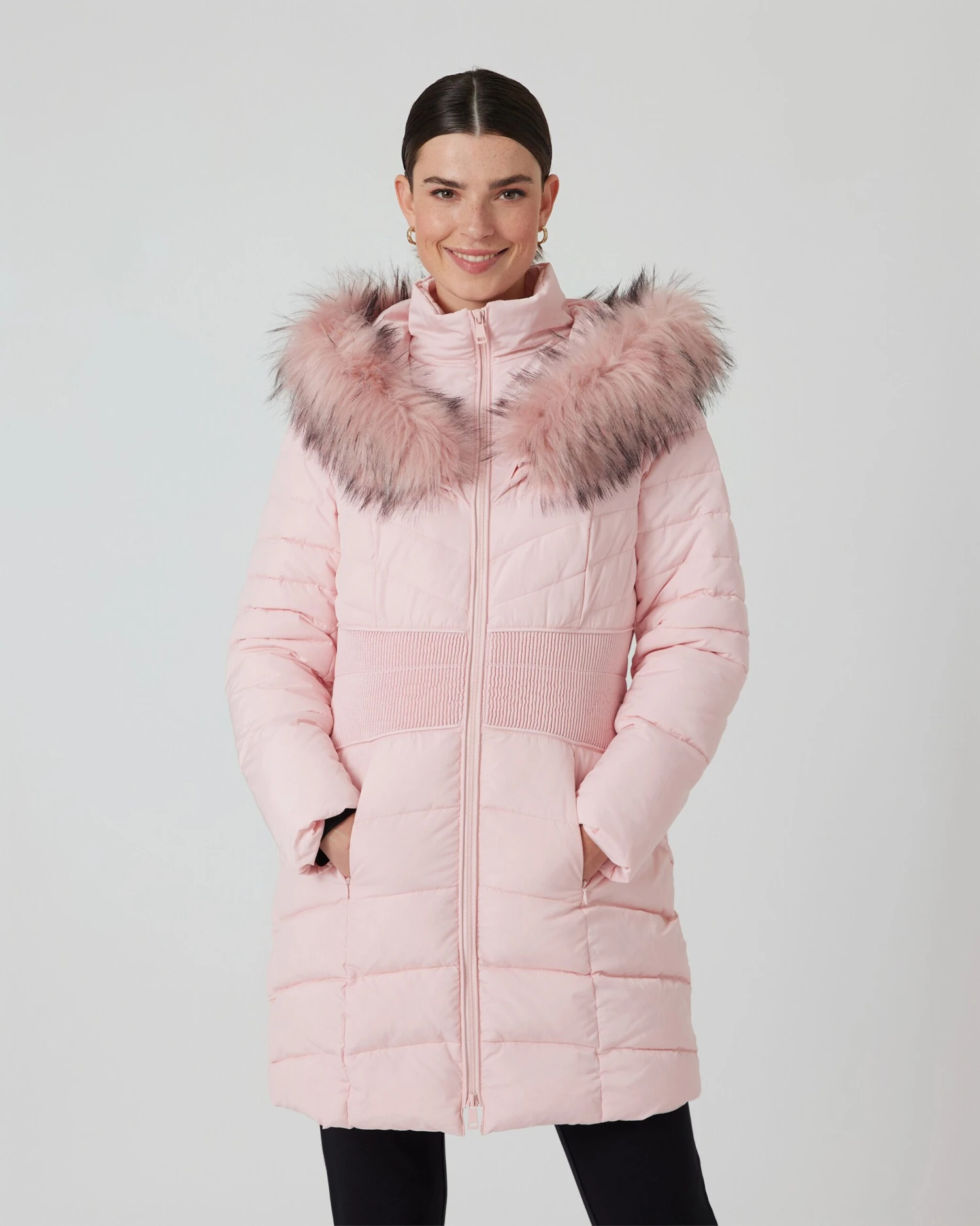 Ein Mantel, mit dem Sie warm und überaus schick durch die kalten Tage gehen. Durch die unterschiedliche Steppung erzeugt das Fashion-Piece von Rita Pfeffinger eine raffinierte, figurschmeichelnde Silhouette. Dabei ist die Taille schmal gesteppt, während der Brustbereich eine streckende V-Steppung und der Rest eine Quersteppung zeigen. Zum Eyecatcher wird die Kapuze mit Kunstfell mit langen Grannenhaaren. Sie schenkt dem Steppmantel einen eleganten, leicht mondänen Touch. Erhältlich in verschiedenen, saisonaktuellen Farben.