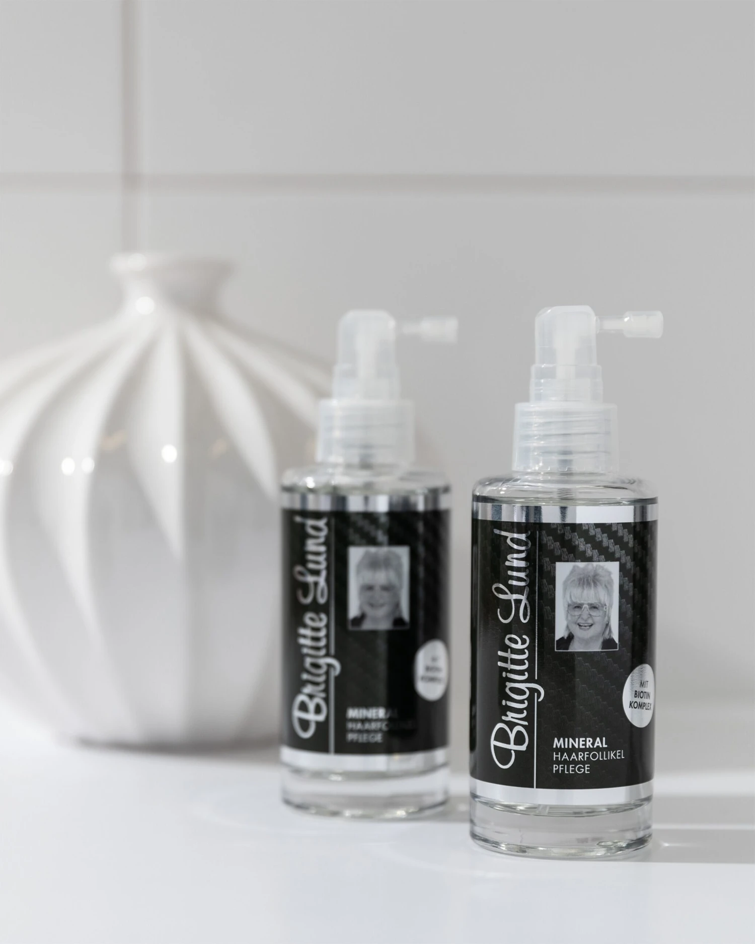 Die Brigitte Lund Mineral Haarfollikel Pflege mit Biotin-Komplex basiert auf neuesten Erkenntnissen durch die Ultraschall Analysen MHz400 von Dr. Klaus Krämer. Frau Lund stärkt Ihre Haarwurzel/Haarfollikel Pflege Linien aktuell mit Biotin. 4 Mineralstoffe – Calcium – Magnesium – Zink und Kieselerde – liefern Nährstoffe für Haarfollikel, Kopfhaut und Haar. Elf Aminosäuren wirken kräftigend auf die Haarstruktur.