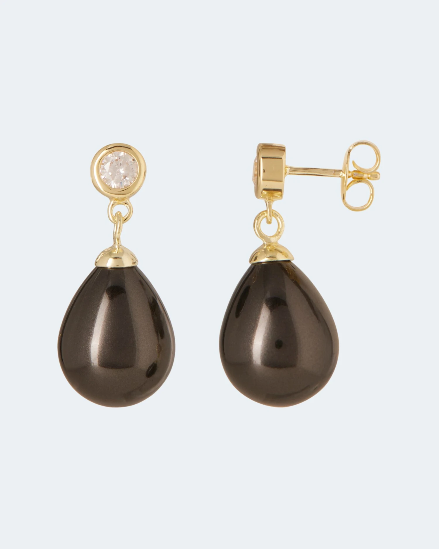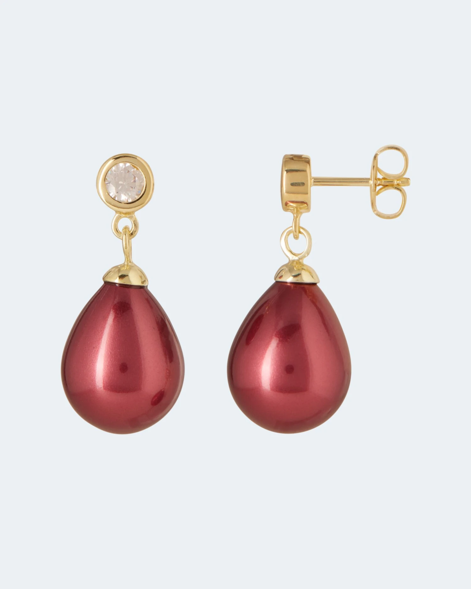 Muschelkernperlen werden – genau wie Diamanten – mit einer speziellen Technik von Hand in Form geschliffen, in einem aufwendigen Spezialverfahren gefärbt und nachbehandelt, um eine erstklassige Farbe und einen wunderschönen Lüster zu garantieren. Der Ohrschmuck stammt aus der Schmuckmanufaktur der Familie Pfeffinger in Pforzheim.
