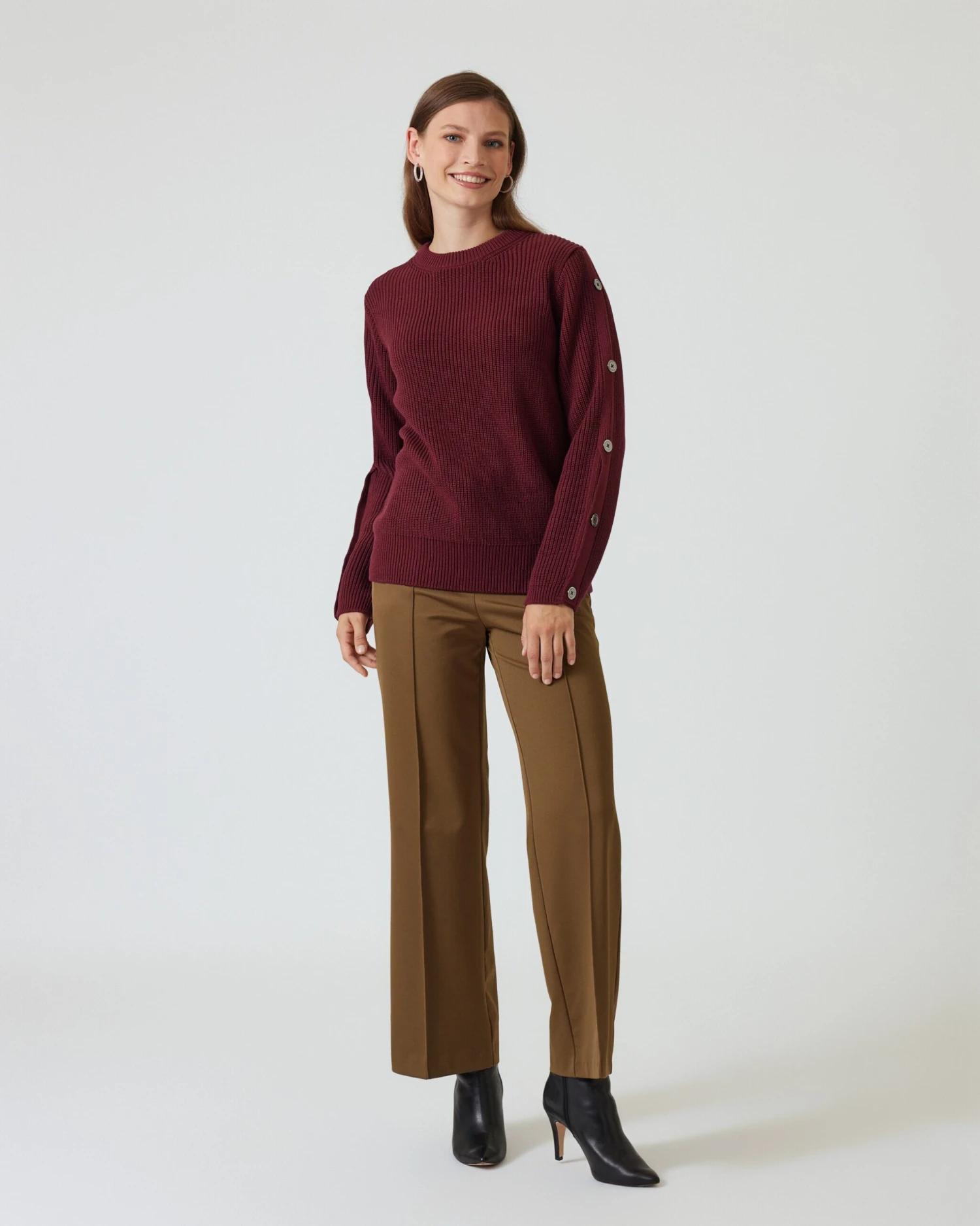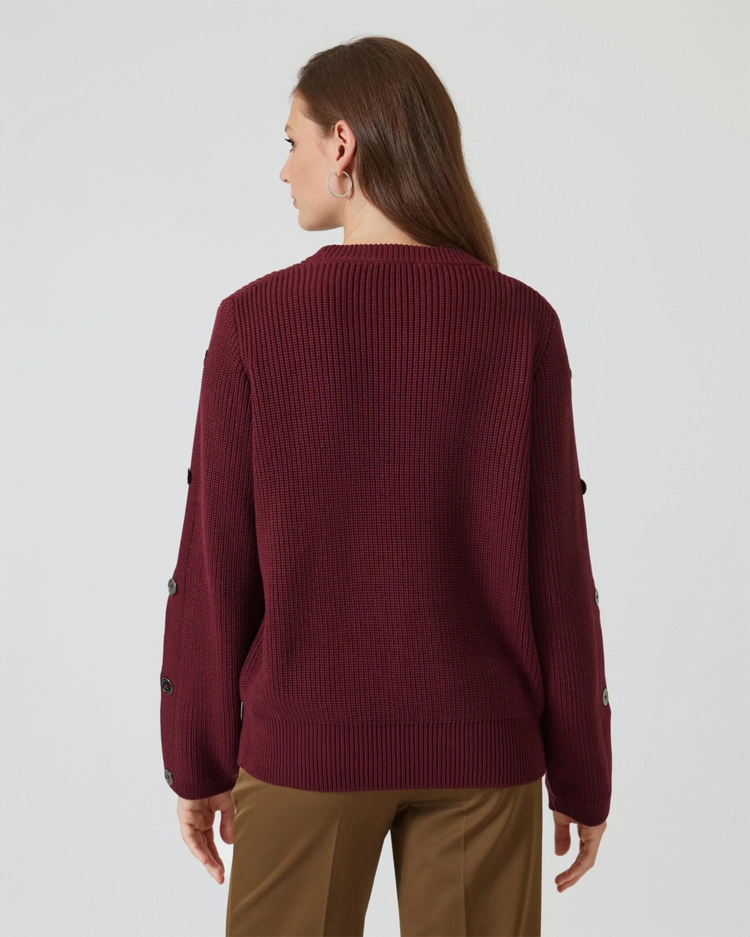 Mehr als nur ein Strickpullover: Mit seinem coolen Schnitt und den stylishen Deko-Knöpfen verleiht dieser Pullover jedem Outfit das gewisse Etwas. Neben den breiten Strickrippen und dem schmalen Rundhalsausschnitt sorgen die weiten Ärmel für relaxte Lässigkeit. Verarbeitet wurde eine hochwertige Qualität mit Baumwolle, trageangenehm, weich und pflegeleicht. Ein Designer-Pulli von Marcel Ostertag.