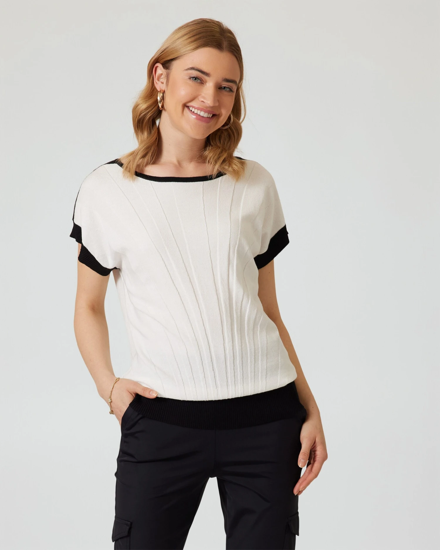 Der sehr elegante Kontrast zwischen den Kanten und dem ansonsten unifarbenen Hintergrund macht den besonderen Reiz dieses Pullovers aus. Dabei stehen drei unterschiedliche Farbvarianten zur Wahl. Je nach Wahlfarbe fällt der Kontrast mal stärker und mal dezenter ins Auge.