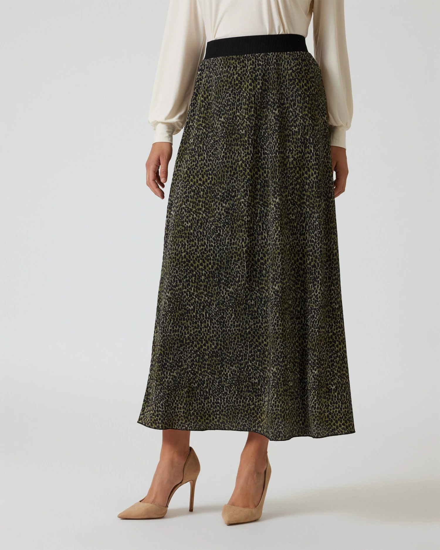 Der glamouröse Allover-Leopardendruck macht den Rock aus der neuen Kollektion von Rita Pfeffinger zu einem echten Mode-Highlight für viele Anlässe. Perfekt ergänzt durch die verspielten Plisseefältchen und den breiten Bund in Kontrastfarbe.