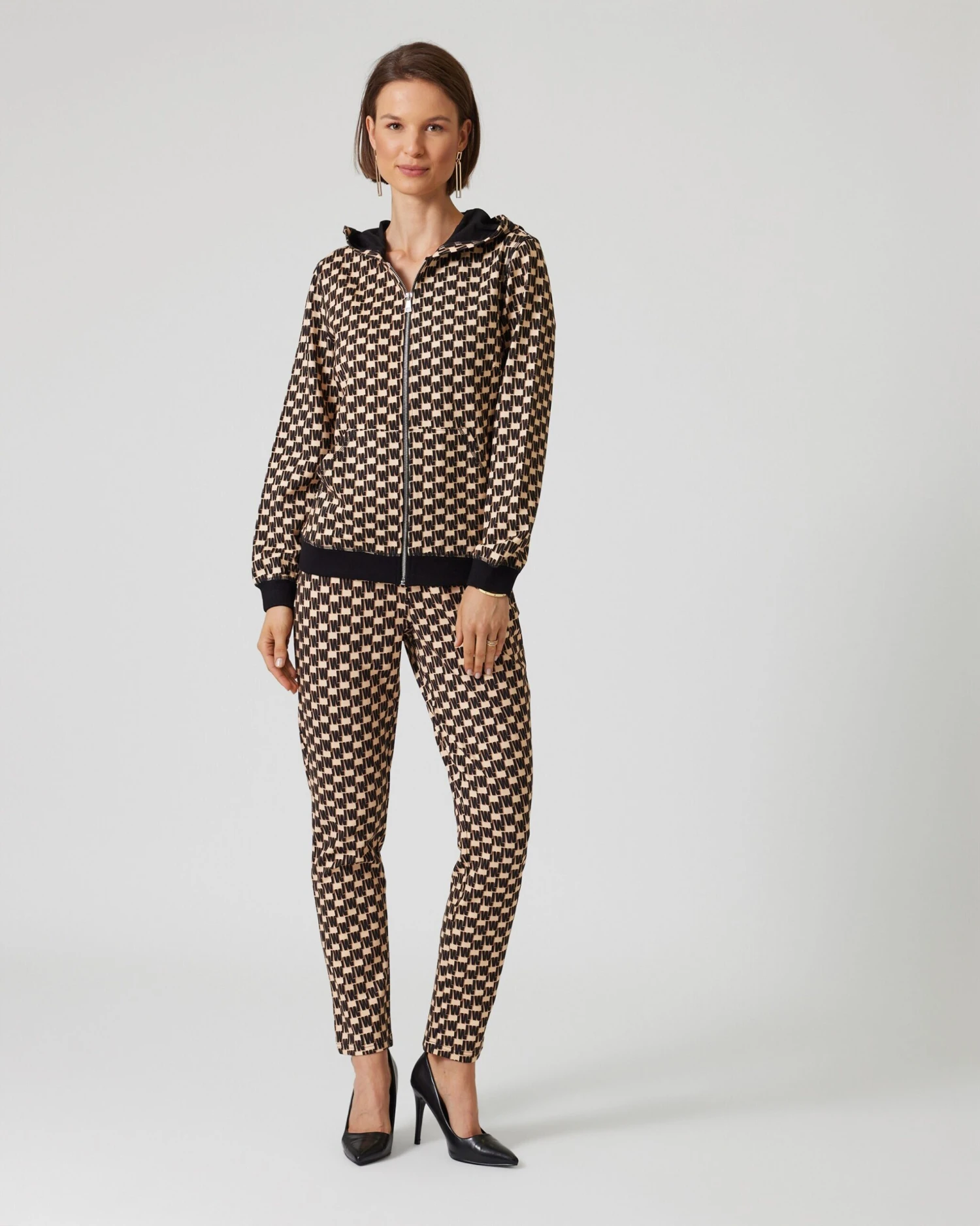 Diese Hose aus feiner Ponte di Roma Qualität wird Sie mit ihrem modernen Design und hohem Tragekomfort begeistern. Die Hose besticht durch ihre sportive Eleganz und ist mit einem auffälligen All-over-Logoprint versehen, der für einen trendigen Look sorgt. Das stylische Mehrfarb-Design verleiht der Hose eine dynamische Optik und macht sie zu einem echten Hingucker. Der Dehnbund mit Bindeband ermöglicht eine individuelle Anpassung der Passform. Der Bund auf Nabelhöhe sorgt für eine angenehme Passform und betont Ihre Figur vorteilhaft. Diese Damen-Hose eignet sich ideal für sportliche Aktivitäten, lässige Freizeitoutfits oder den eleganten Mix-Look.