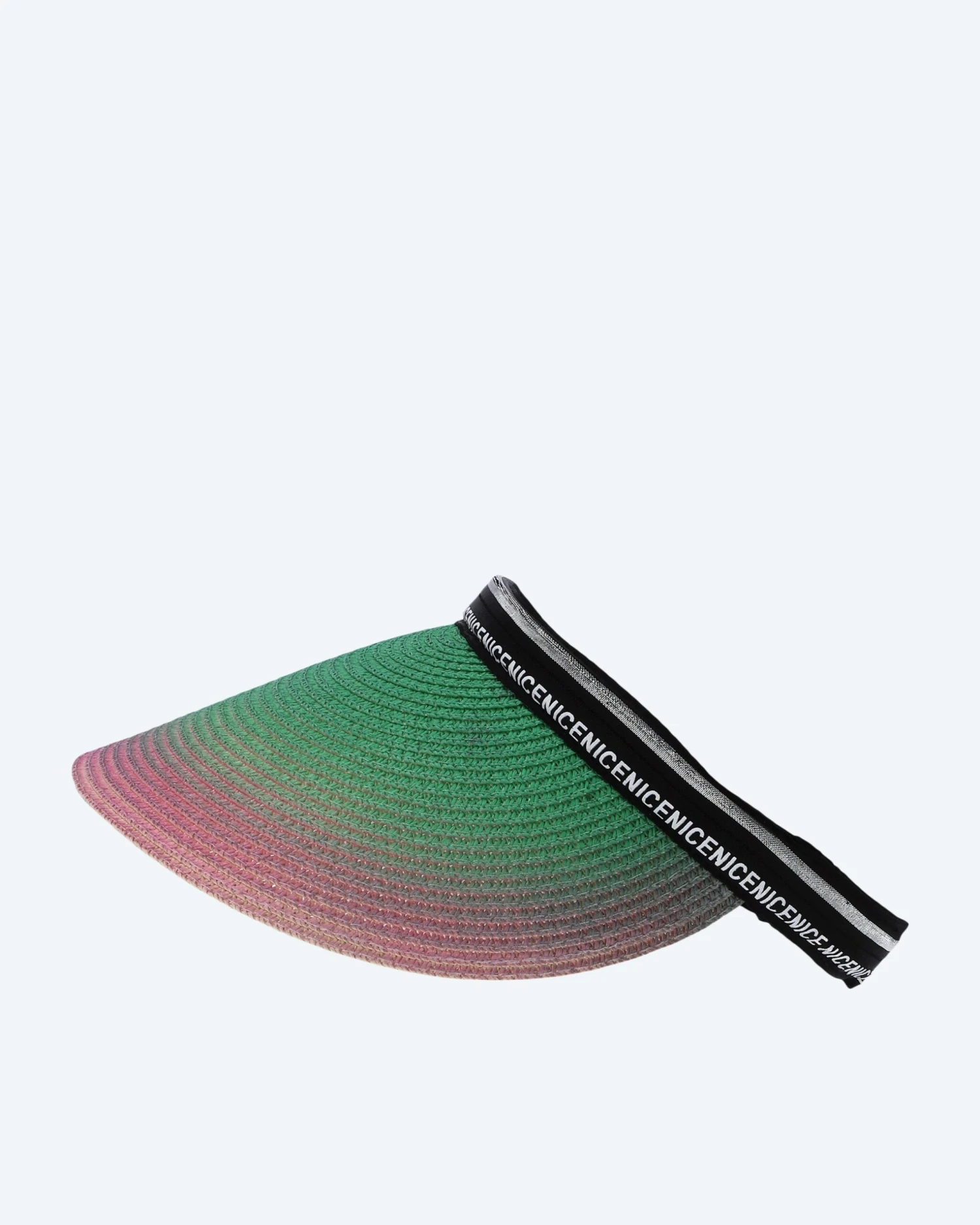 So macht Sonnenschutz Spaß! Der schön gebogene Schild ist in einem peppigen Farbverlauf gestaltet. Gehalten wird er von einem breiten, elastischen Haarband. So lässt er sich individuell anpassen und sitzt immer perfekt.