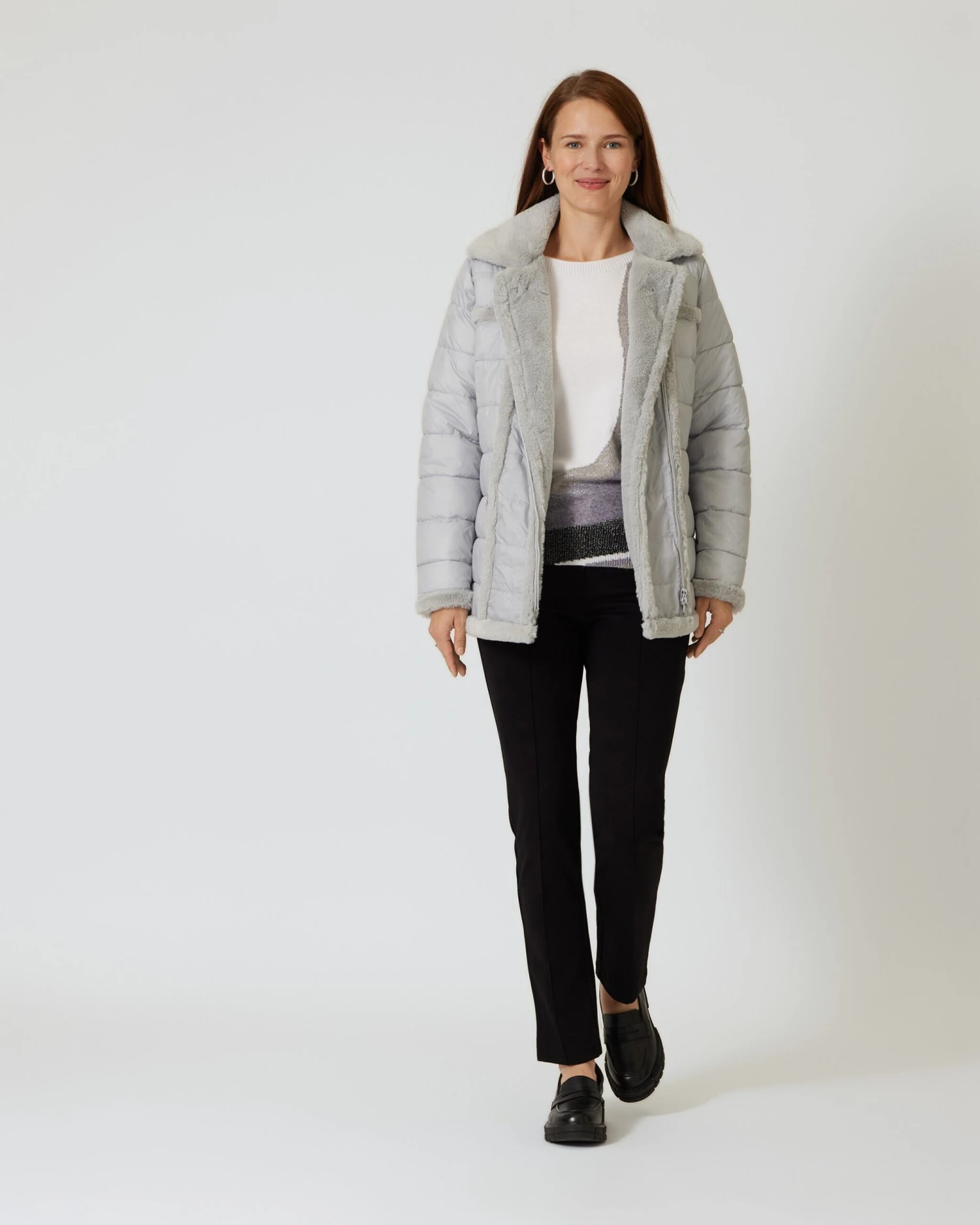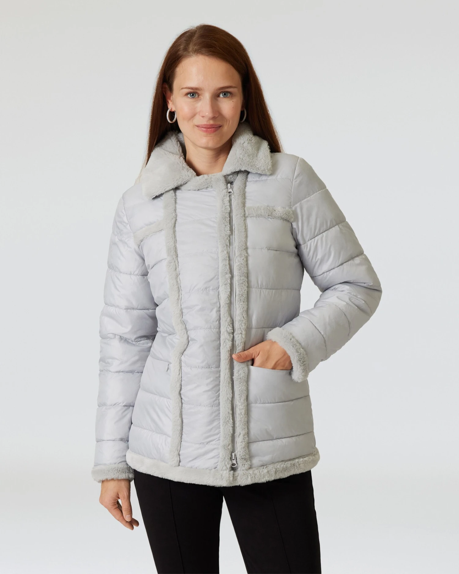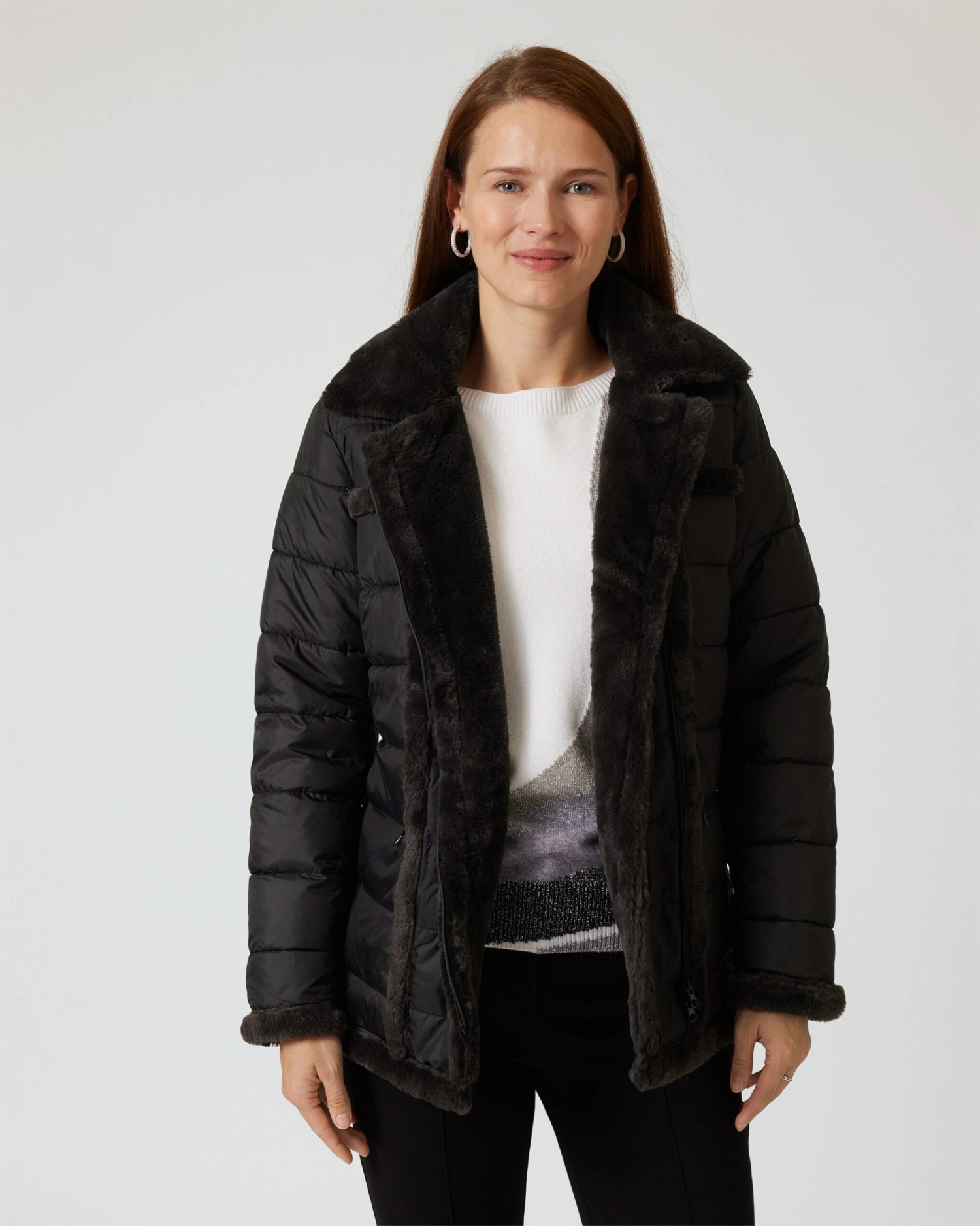 - Umlegekragen mit Webpelzbesatz