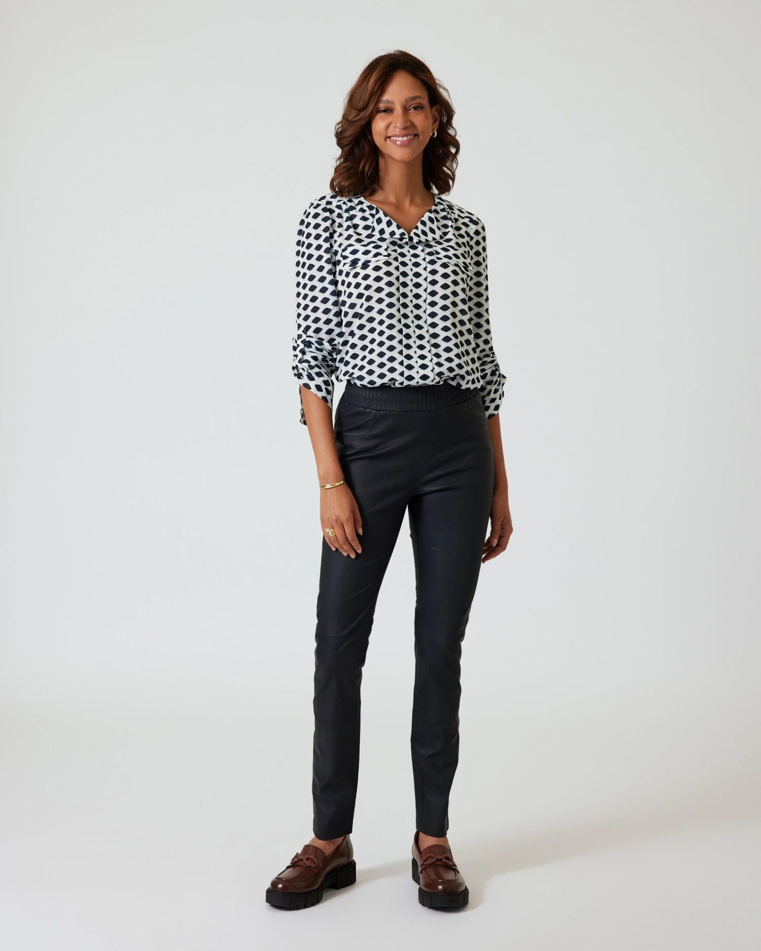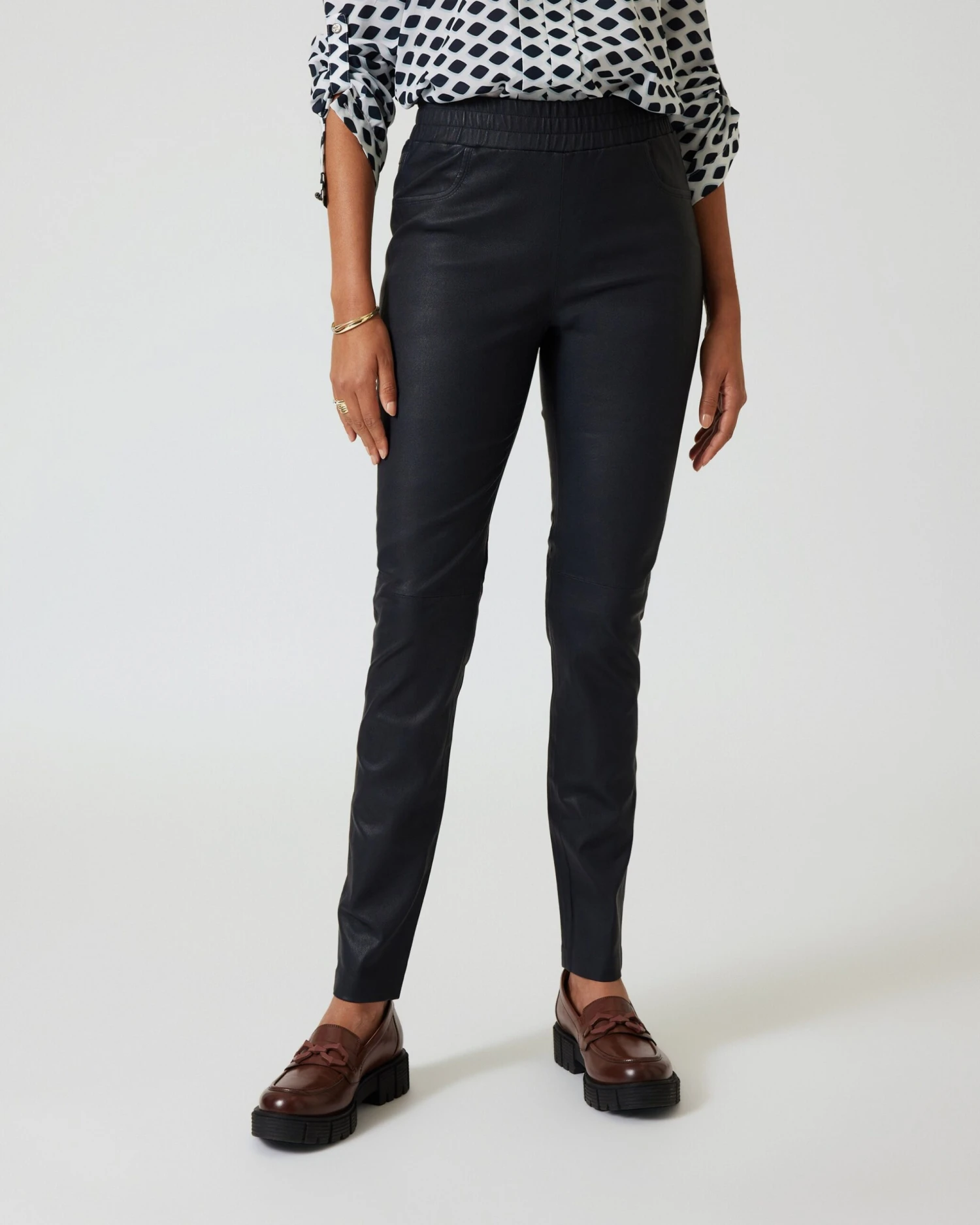 Schmale, schwarze Leder-Jeggings sind die Must-haves der Saison. Sie lassen sich lässig und elegant kombinieren und passen zu Oversized-Strickpullovern oder -Sweatshirts genauso gut wie zu mädchenhaften Blümchenblusen. Die THOM by Thomas Rath Röhre in Stretch-Qualität passt sich Ihrer Figur optimal an und lenkt den Blick immer auf die Schuhe, die Sie dazu tragen: Ob Sneakers, Boots, Pumps oder Stiefel – alles ist möglich. Diesen Lederliebling müssen Sie haben.