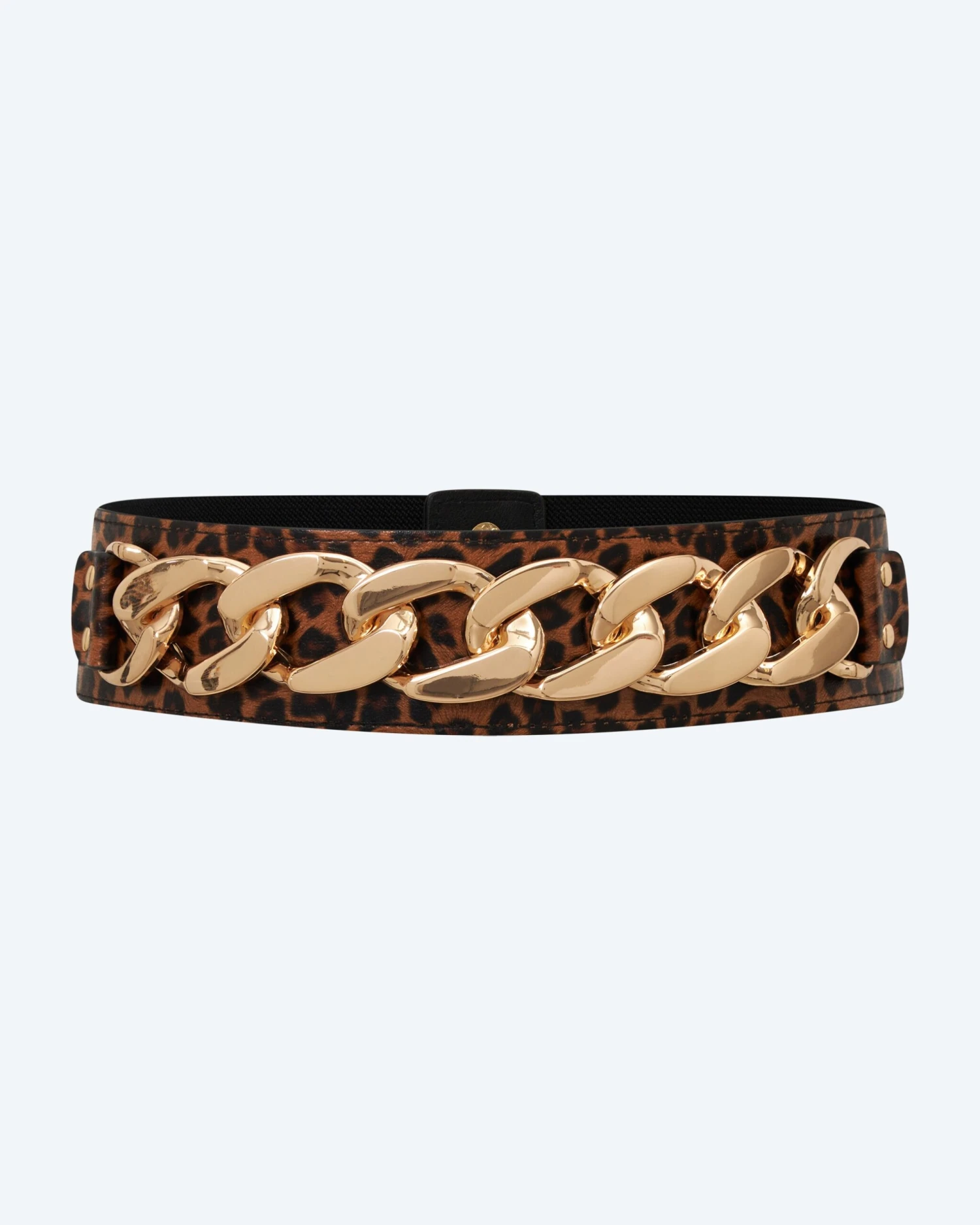 Gürtel sind individuelle Mode-Accessoires, die jedem Look Personality verleihen. Dieses Rita Pfeffinger Modell besteht aus einem Stretchband, einem Kunstleder-Element mit Leo-Print und einem Kettendetail in Gold-Optik. Das Stretchband passt sich optimal an die Figur an und betont so attraktiv die Taille. Durch das Ketten-Element erhält das Accessoire eine noble Ausstrahlung.
