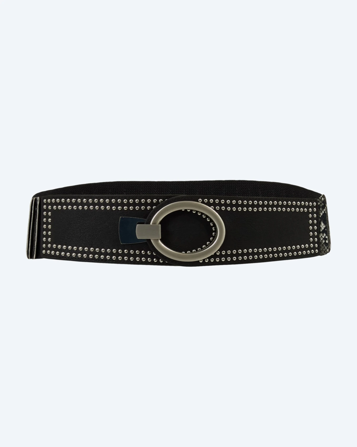 Der Gürtel aus Lederimitat ist mit rockigen Nieten verziert und einer mattierten Schließe. Der Gürtel ist 6 cm breit und kann auch ganz lässig über Jeans getragen werden, um Ihre Hüfte stylisch zu betonen.
