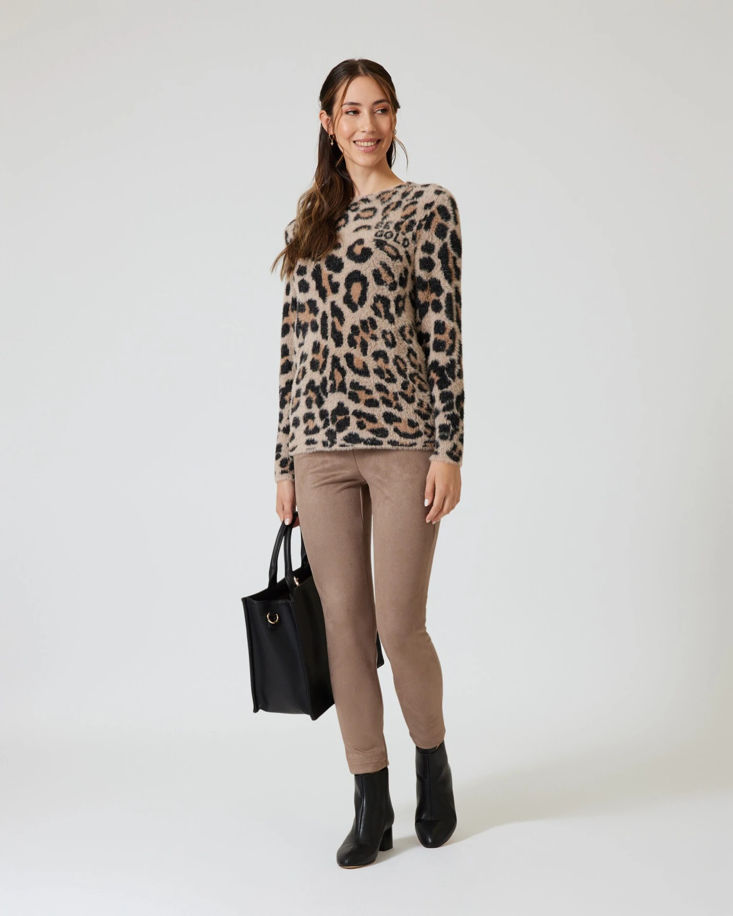 Diese wunderschöne Hose schafft mühelos die Kombination aus Trend-Piece und unkompliziertem Begleiter zum Wohlfühlen. Das Uni-Design in Nougat harmoniert mit den unterschiedlichsten Oberteilen. Schick auch die Machart aus feinem Velours-Lederimitat. Eine Hose mit Hinguck-Garantie!