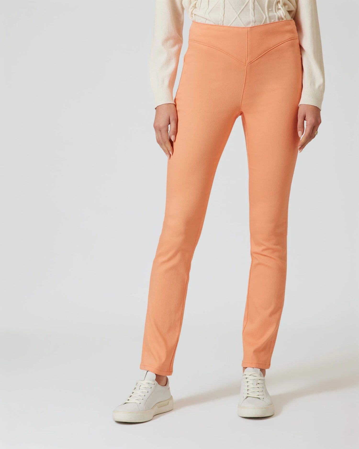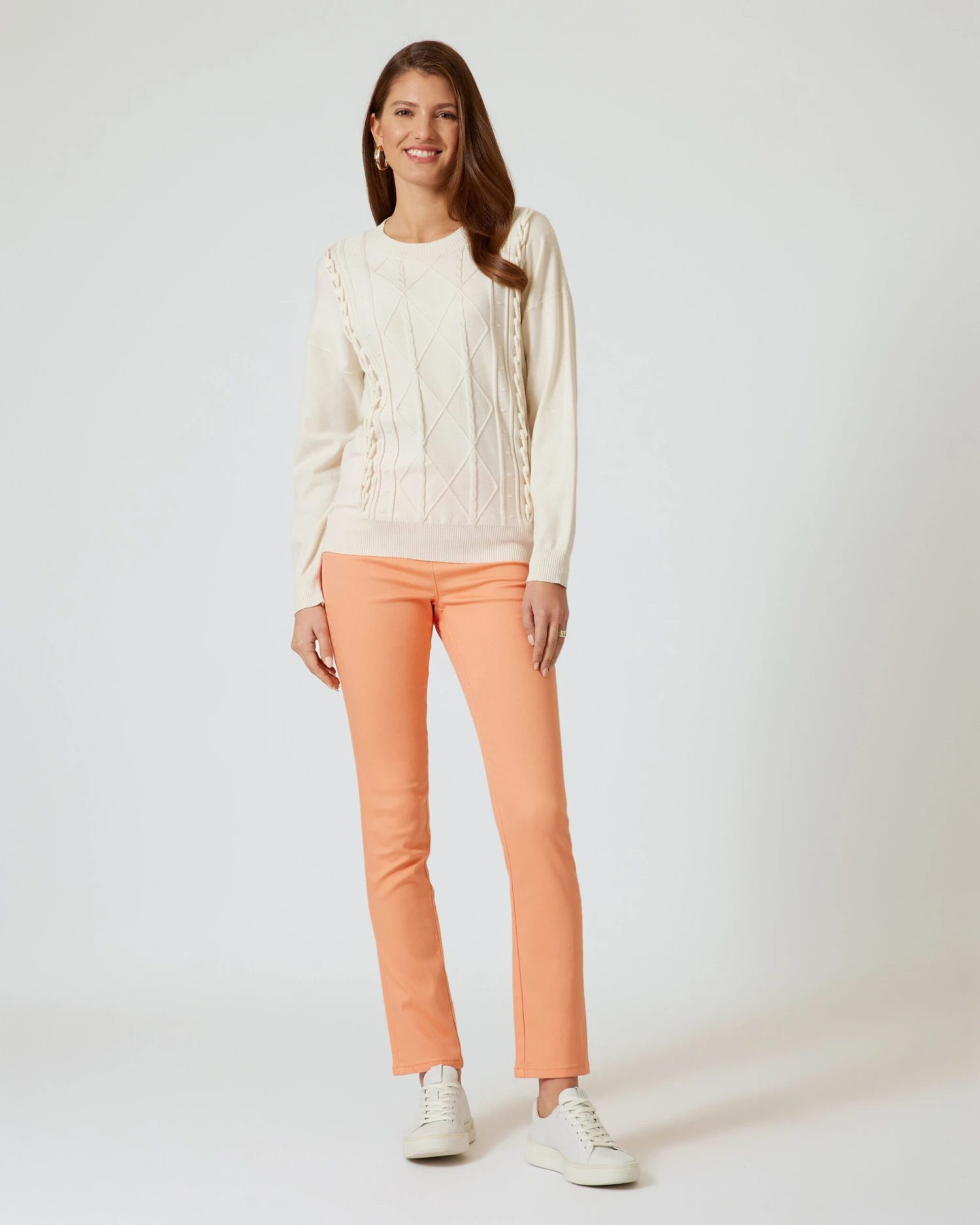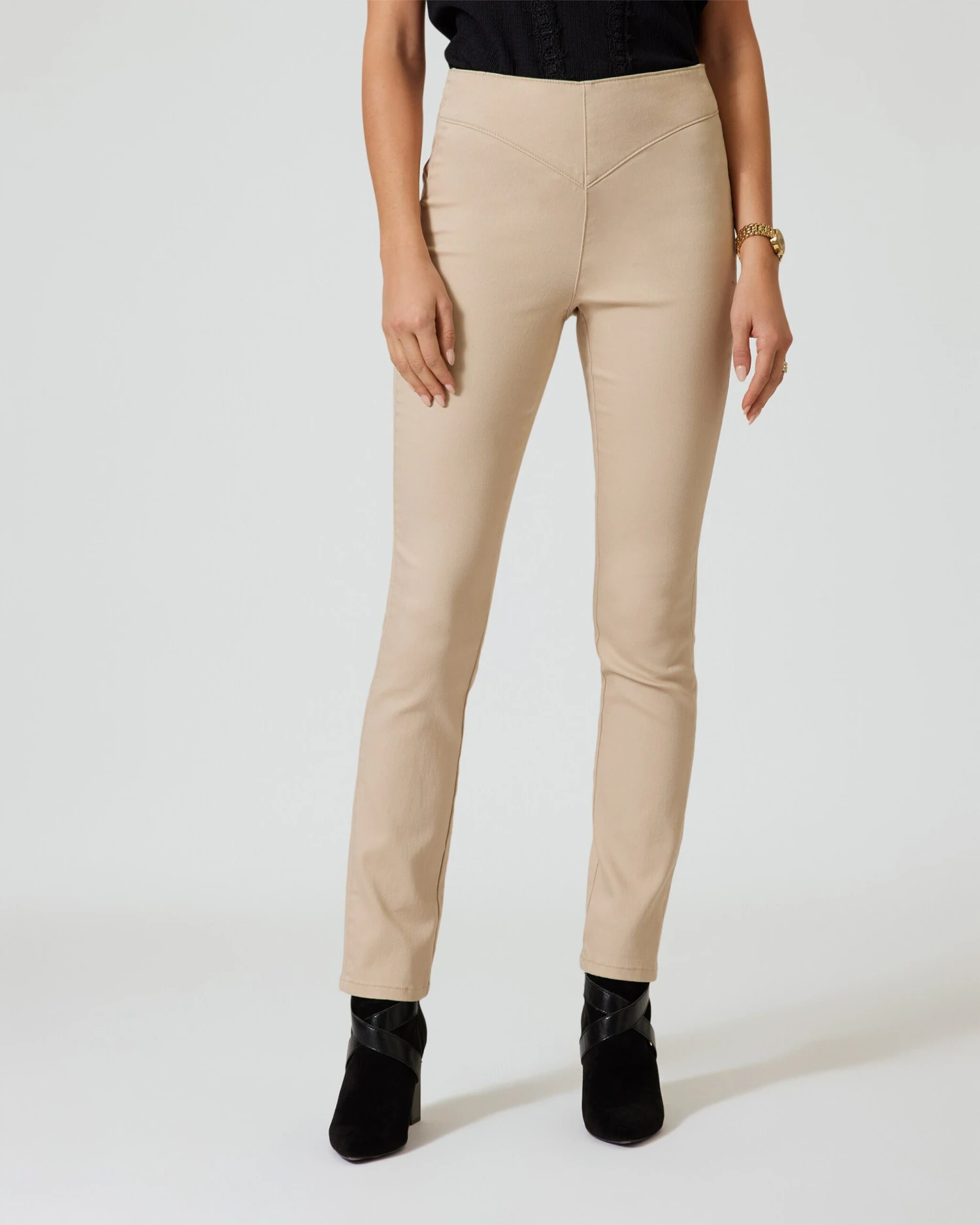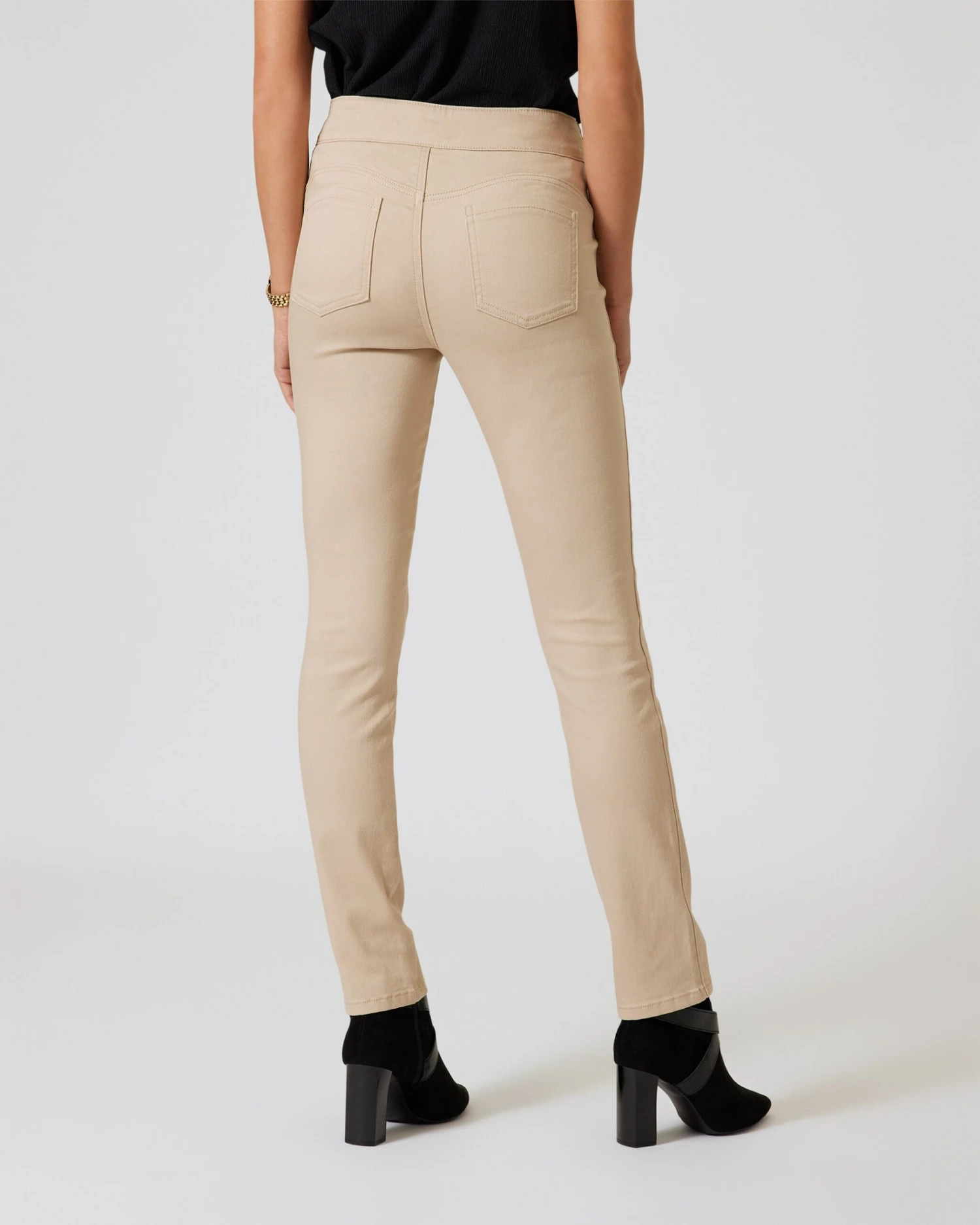 Die Hose besticht durch ihren jugendlichen Jeans-Look und den hohen Tragekomfort dank der Stretch-Qualität. Sie hat keine Seitentaschen, sodass nichts aufträgt. Die Gesäßtaschen formen einen schönen Po. Ein BE Gold-Aufnäher auf der rechten Gesäßtasche ist ein kleiner Eyecatcher. Dank der Schlupfform ist ein Verschluss überflüssig.