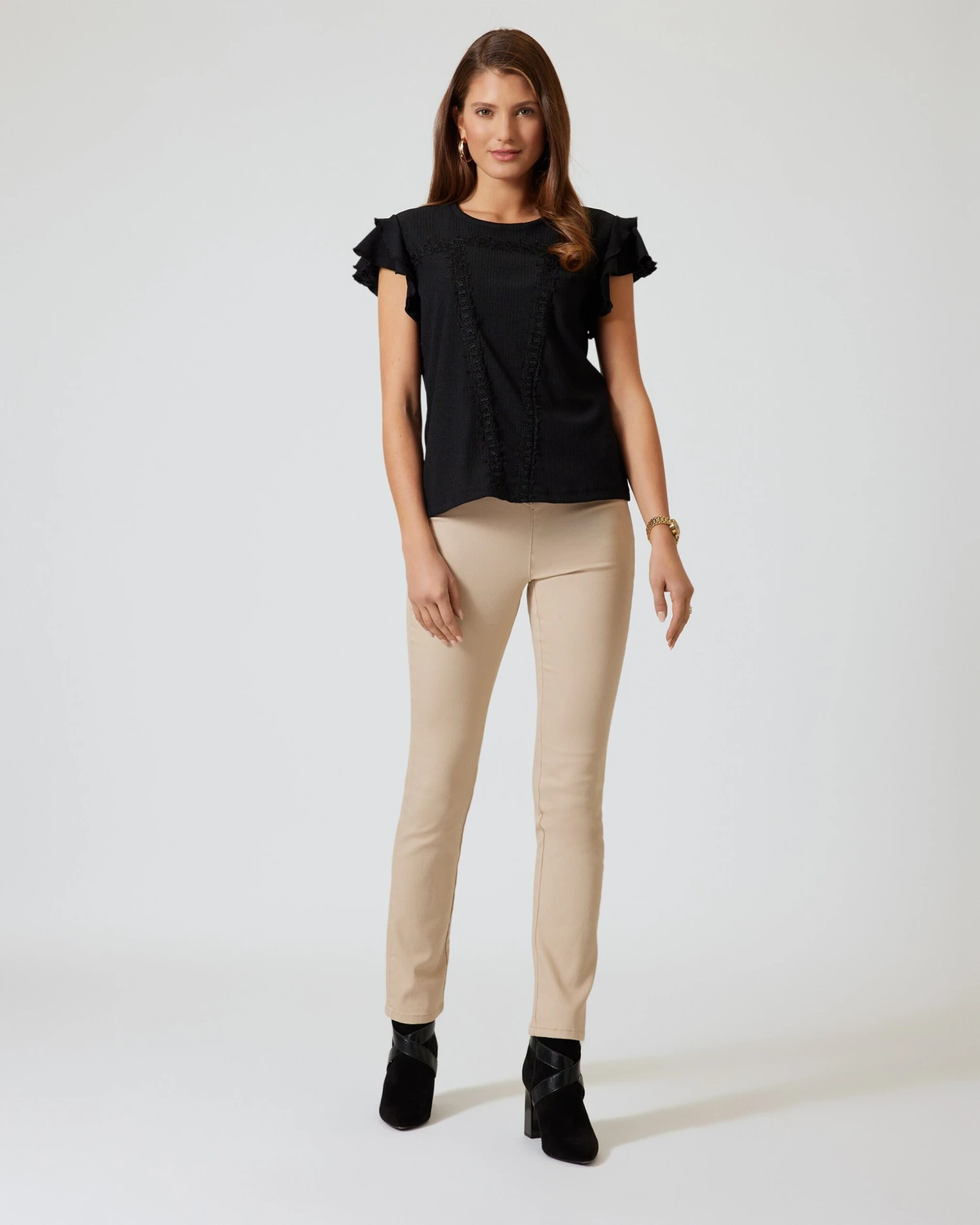 Die gerade Form der Hose zaubert lange, schlanke Beine. Dabei bietet sie genügend Hüft- und Oberschenkelweite. Kombinieren Sie mit sportlichen Sneakers, femininen Pumps oder schicken Stiefeln und Sie sind klasse angezogen.