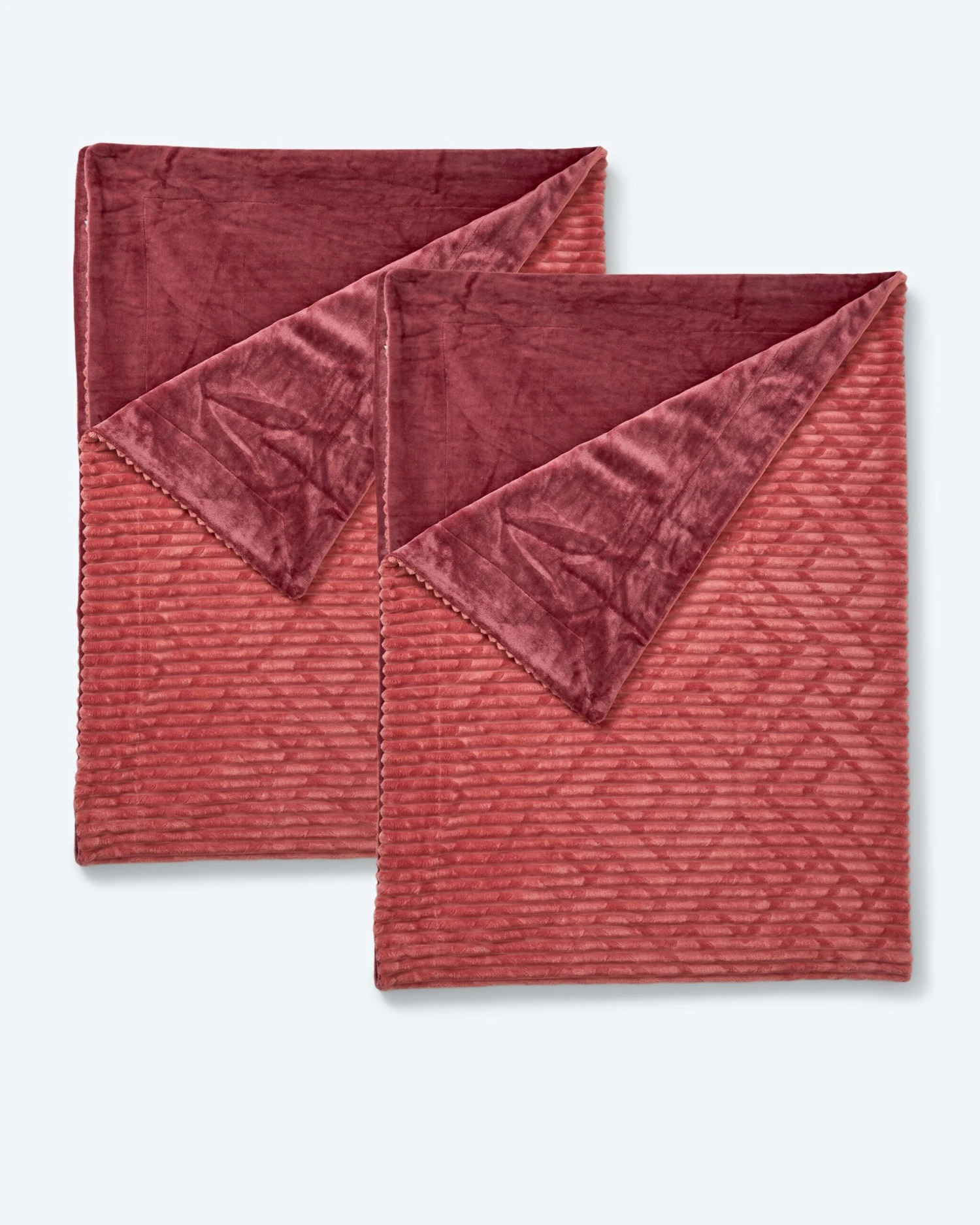 Sie erhalten zwei XXL-Decken mit circa 170 x 220 cm, die zudem durch ihr raffiniertes Wende-Design begeistern. So können Sie wahlweise die modische Cord-Optik oder das klassische uni-Design nach oben drehen.