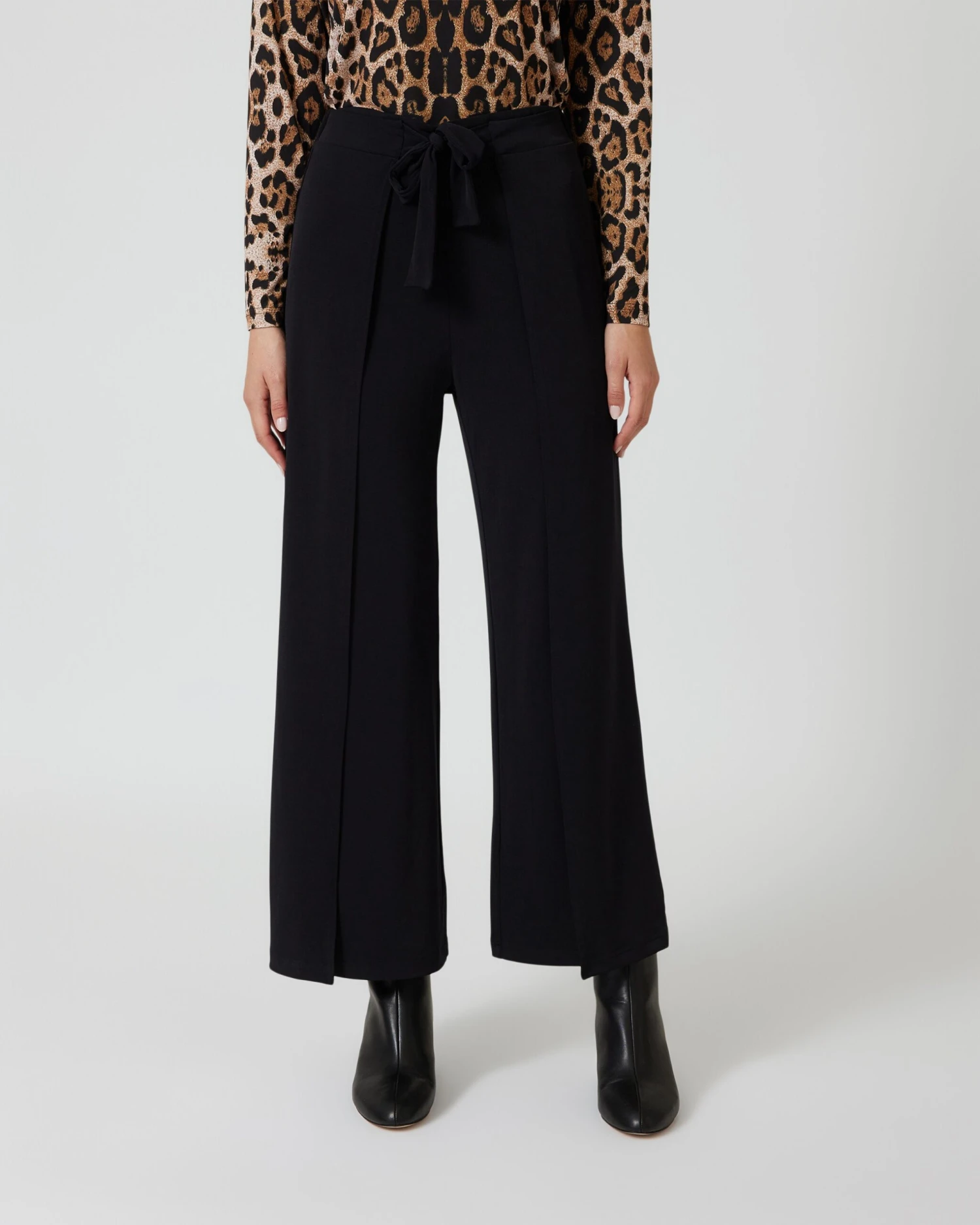 Die attraktive Wickel-Optik gibt der Hose ihre charismatische Ausstrahlung. Der breite Bund auf Nabelhöhe ist hinten elastisch und vorne mit einem Band zum Binden versehen. Die attraktive Kombi sorgt dafür, dass die Hose wunderbar sitzt.