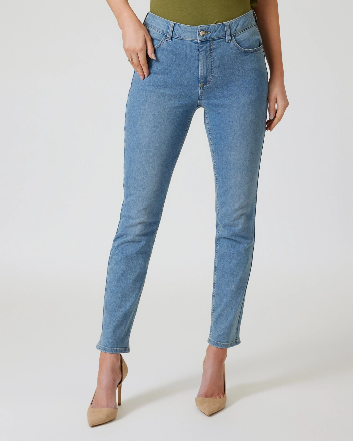 Die Jeans von Judith Williams ist im 4-Pocket-Style gearbeitet, wird mit einem Knopf und einem Reißverschluss verschlossen und sitzt toll – egal welcher Figurtyp Sie sind. Die Jeans hat außerdem Schlaufen für einen schicken Gürtel. Das sorgt für schöne Proportionen und eine attraktive Silhouette.