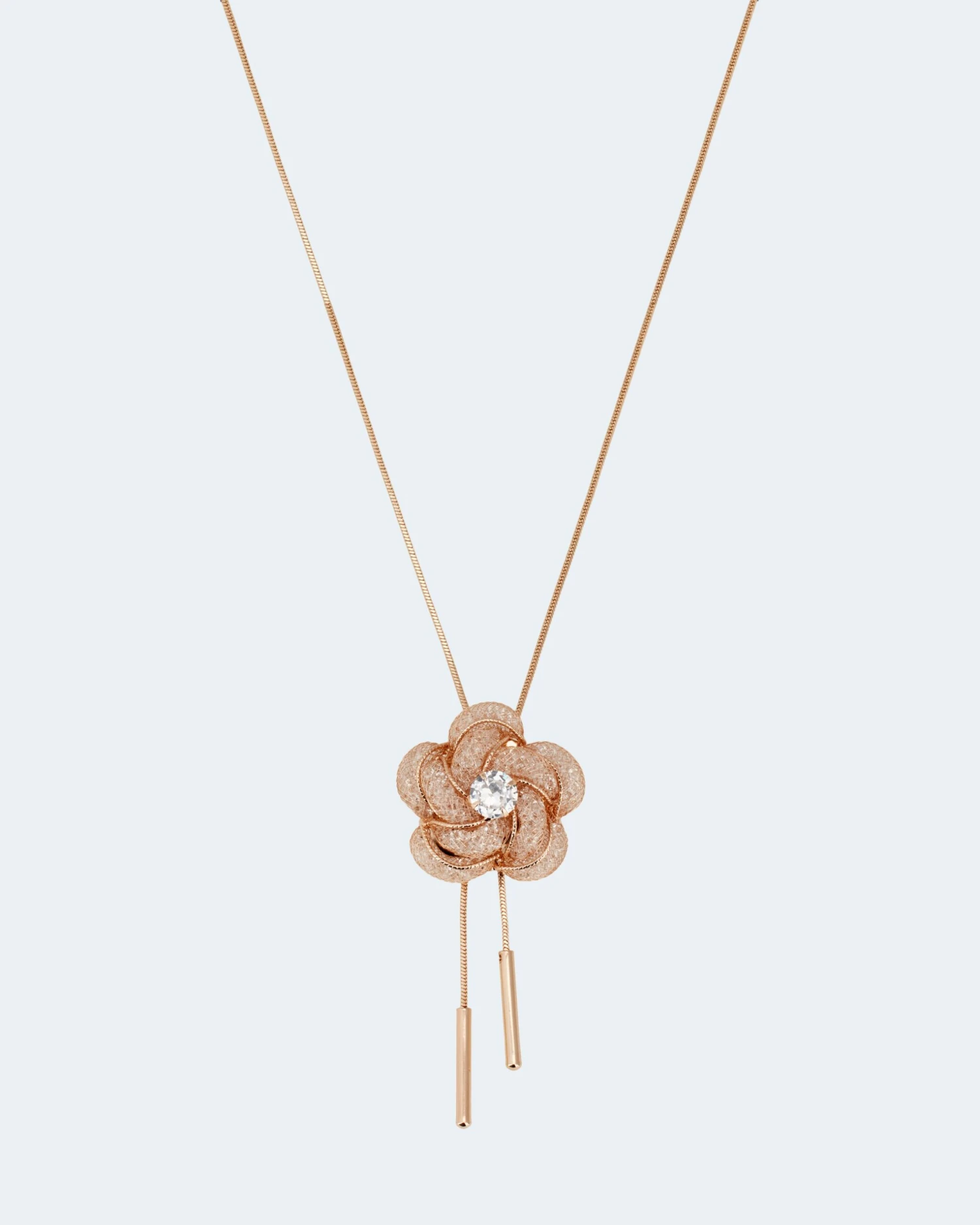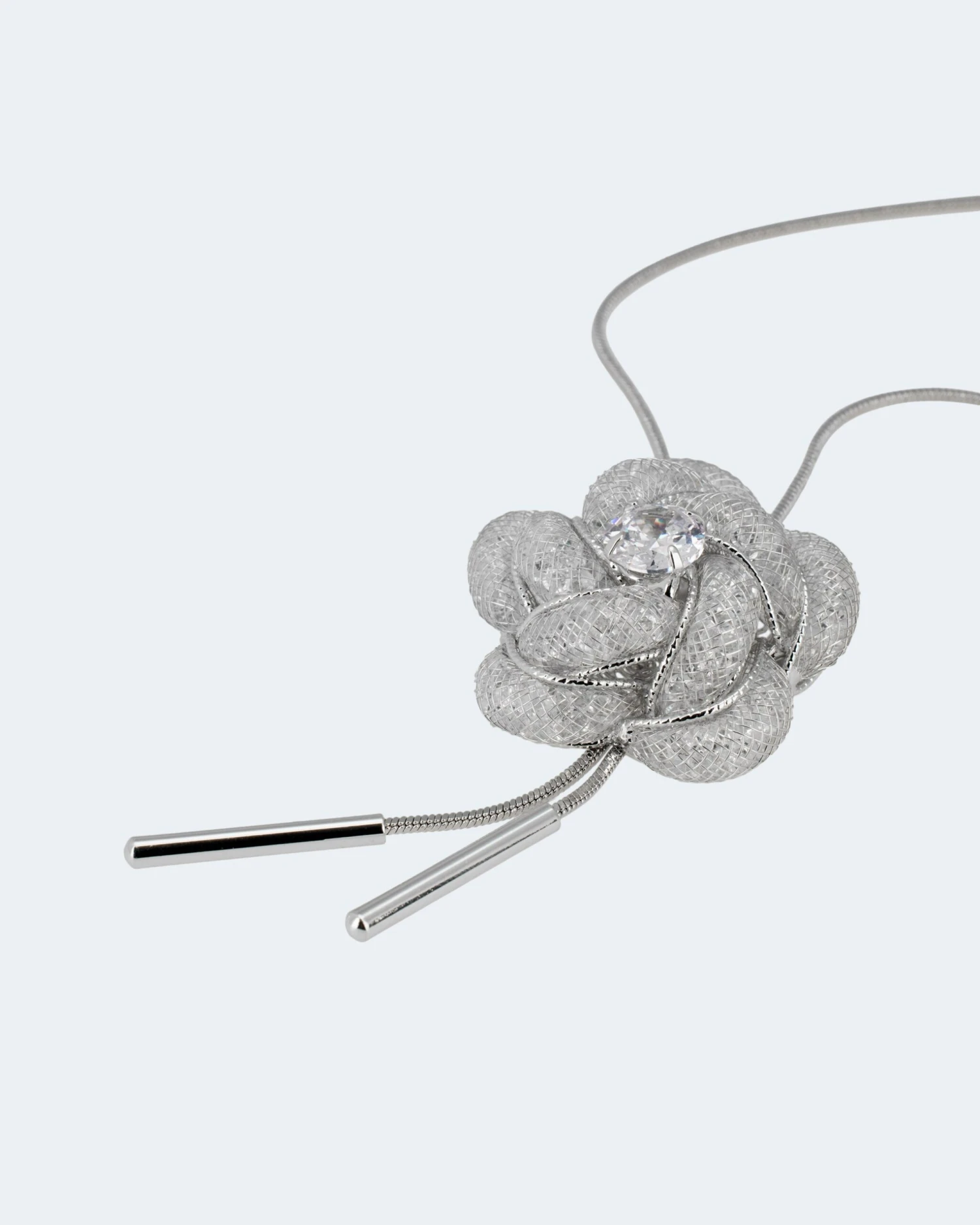 Ein bildschöner Dekolletéschmuck mit funkelnden Kristallen: Der detailreich strukturierte Blütenanhänger ist zugleich der Gleiterverschluss – der ermöglicht eine flexible Längengestaltung. Besetzt mit einem großen Zirkonia im Zentrum sowie 450 kleineren Deko-Kristallen, die den Anhänger dicht an dicht bedecken. Das ganze Ensemble steht silberweiß palladiniert, gelb- oder rosévergoldet zur Wahl.